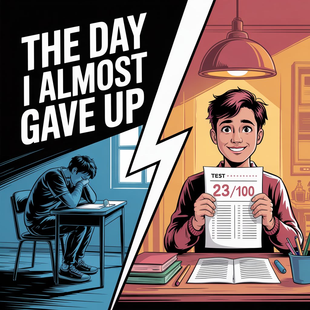 That number stuck to me all the way home. Every step felt like it was dragging through wet cement. By the time I reached my room, I wasn’t just disappointed — I was done. Done with trying. Done with school. Done pretending like I could succeed in something that clearly wasn’t meant for me.