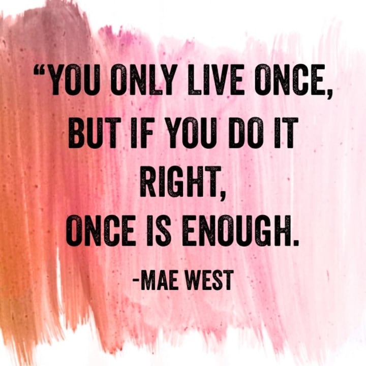 “You only live once, but if you do it right, once is enough.” -Mae West