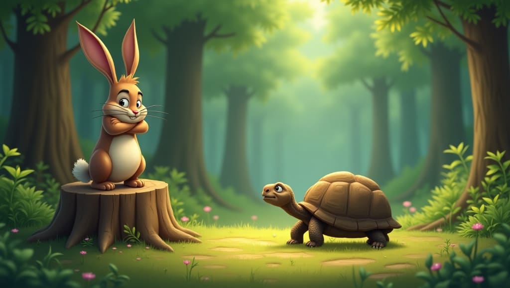 Once upon a time, in a lush green forest, there lived a rabbit named Rambo. He was swift, agile, and proud of his speed. No other animal in the forest could outrun him, and he never missed an opportunity to boast about it.