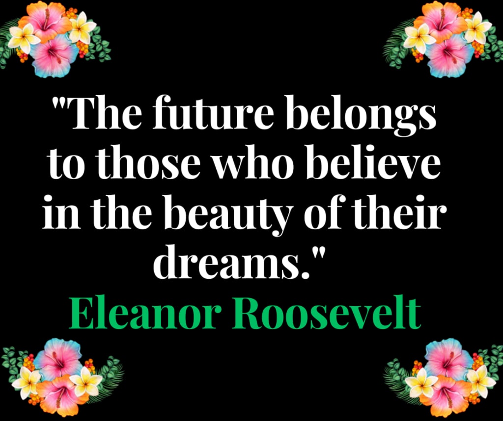 "The future belongs to those who believe in the beauty of their dreams." - Eleanor Roosevelt