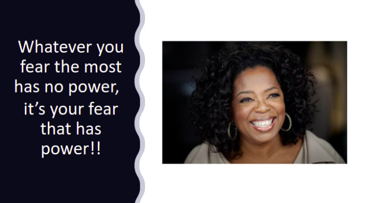Oprah Winfrey says, Whatever you fear the most has no power, it's your fear that has power!!
