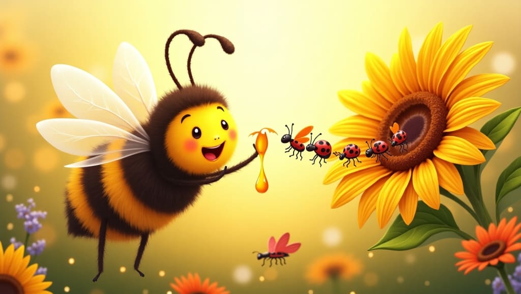 From that day on, the bees no longer kept their nectar to themselves. They worked with the other insects, ensuring that every creature in the meadow had enough. When winter came, no one went hungry. The hive was full, the garden thrived, and the meadow became more vibrant than ever.