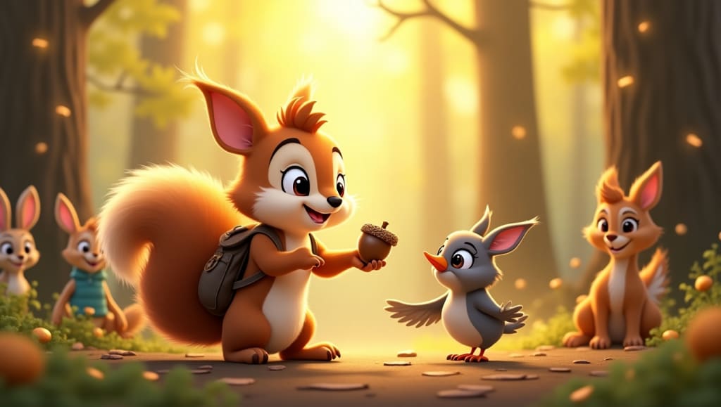 From that day on, the animals of the forest made a promise—to always help one another, no matter how small the deed. And Sammy, the little squirrel with a big heart, continued to spread kindness wherever he went.