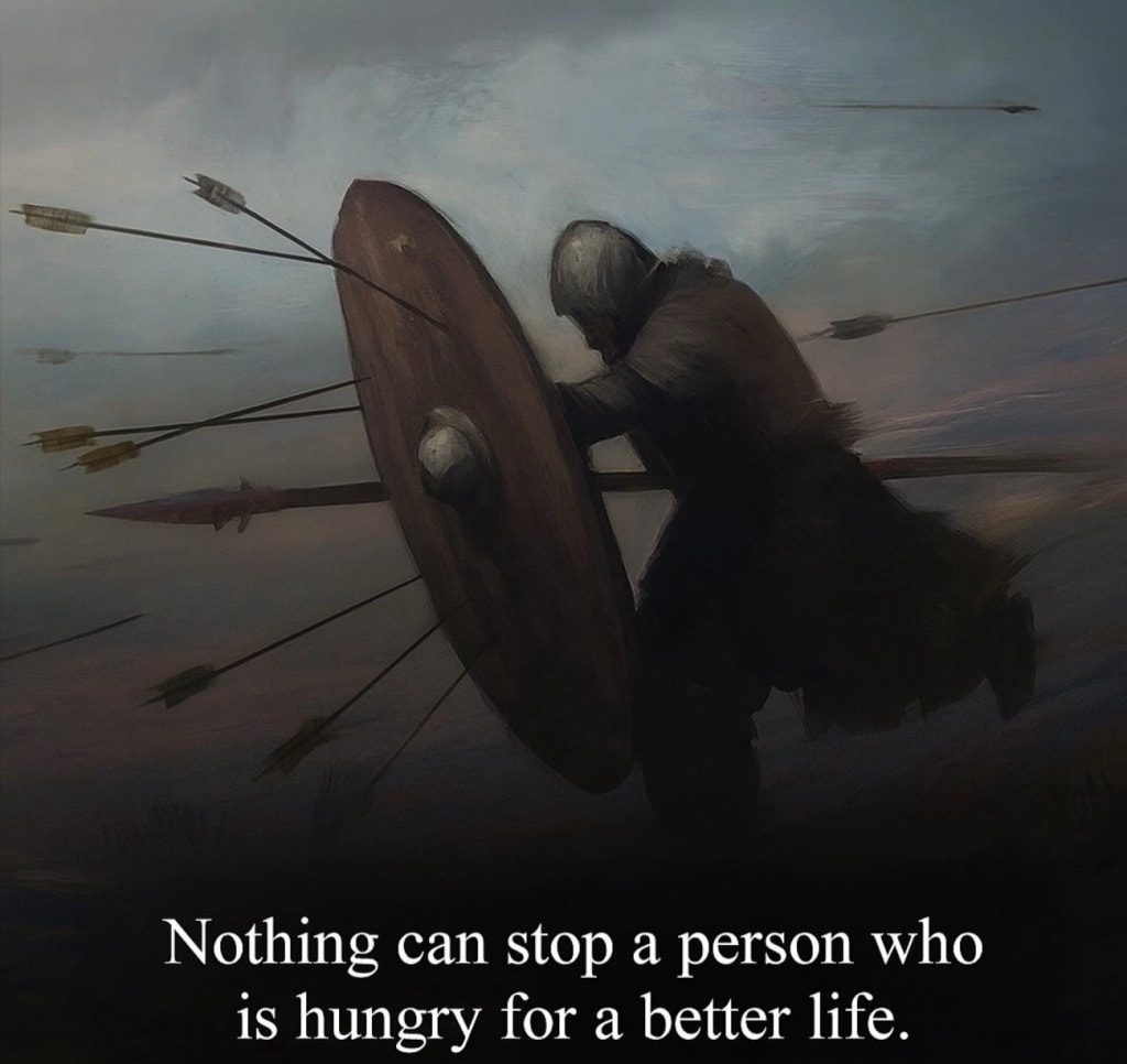 The image of a warrior holding his shield against a storm of arrows captures the essence of this hunger perfectly. Life, like a battlefield, never spares anyone. Arrows of failure, rejection, and disappointment rain down on us. Yet, there are those who refuse to kneel. They lift their shield of hope, driven not by luck or talent, but by sheer determination—a relentless desire to carve out a better life.