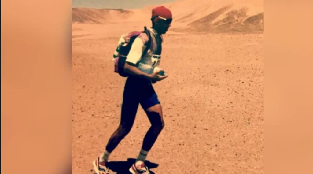 The 57-mile journey through the desert between campgrounds on the fourth day of the Marathon des Sables makes it the event's longest single stage. On April 14, 1994, as Prosperi crossed the third checkpoint, 20 miles into the day's adventure, the scorching heat had already raised temperatures to 115°F. He grabbed his permitted 2 liters of water and kept running as required by the rules.