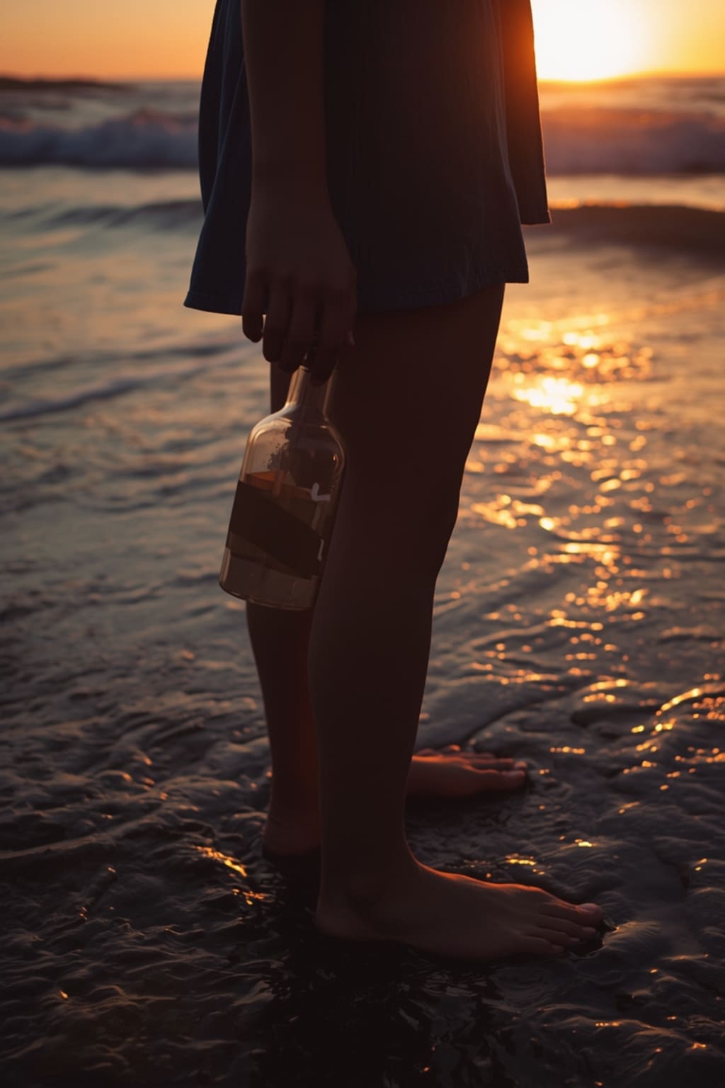 No more bottles washed ashore after that. But sometimes, when the tide turned red and the sun sank low, people swore they saw two lanterns drifting together far out on the horizon — one golden, one blue — never apart.