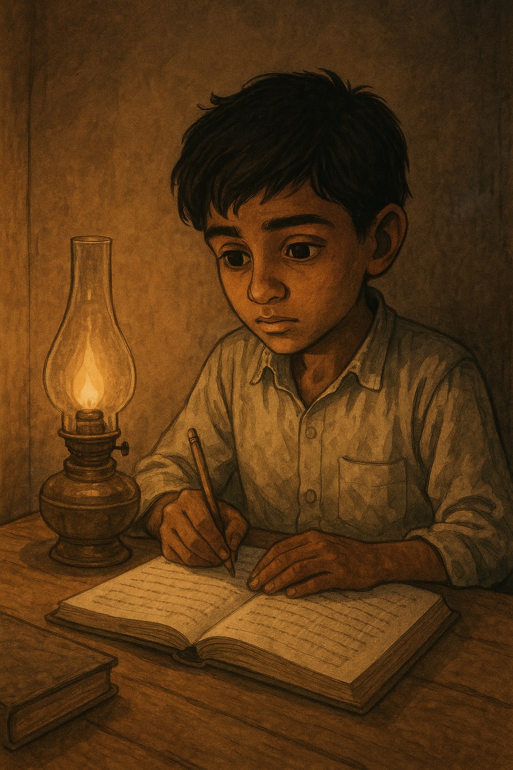 Still, he didn’t give up. He borrowed old books from the village library, asked his teachers for help, and studied late into the night under the dim light of an oil lamp. Sometimes, he was so tired he would fall asleep with his head resting on an open page.