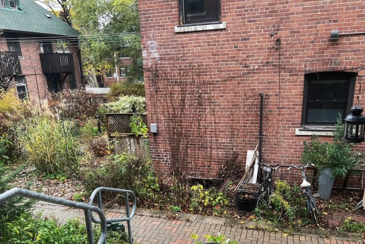 On sunny days, this woman bustles about in crisp flowered frocks, basket in hand, nose in air. She doesn’t participate in neighbourhood functions, which is her right. But she’s lived here long enough to know how it works with the common grounds. I mean, neighbours can do small jobs independently, like plant a clematis in front of their apartment or grow tomatoes in the communal garden or sprout seeds in a pot on their stoop - but cut down a whole tree?