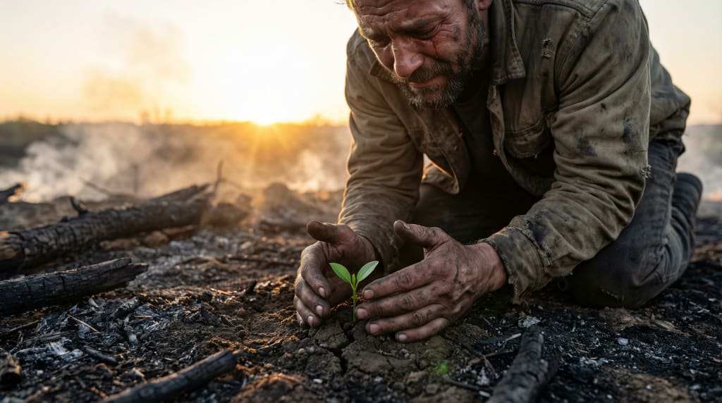 That tiny leaf changed something inside Kareem. He realized that if a small plant could find the strength to grow in the middle of ashes, then he, a human being with a mind and a heart, could also find a way. This was the moment his "Unbreakable Spirit" woke up. He didn't wait for a miracle. He didn't wait for someone to give him a loan. He picked up a broom and started cleaning the dirt.