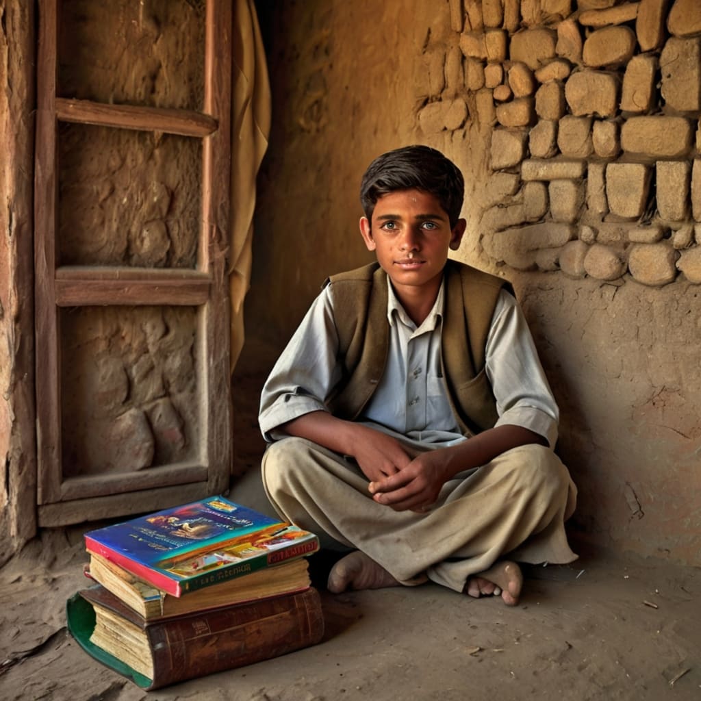 One afternoon, after returning home from school, Hamad sat quietly at the corner of the small mud-brick house they lived in. His books were old, his bag was torn, and his lunch was always simple—usually a piece of roti with some vegetables. As he reflected on his day, emotions swelled in his young heart.