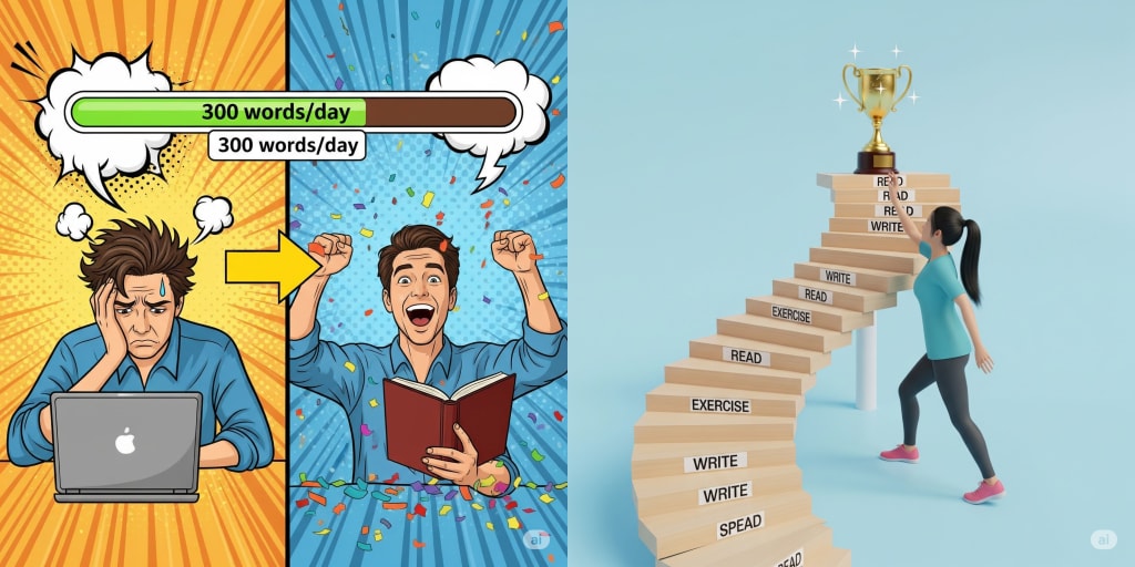 Author Rachel Aaron increased her writing output from 2,000 to 10,000 words a day by breaking it into tiny, manageable sessions. She started with just 300 words, then gradually expanded.