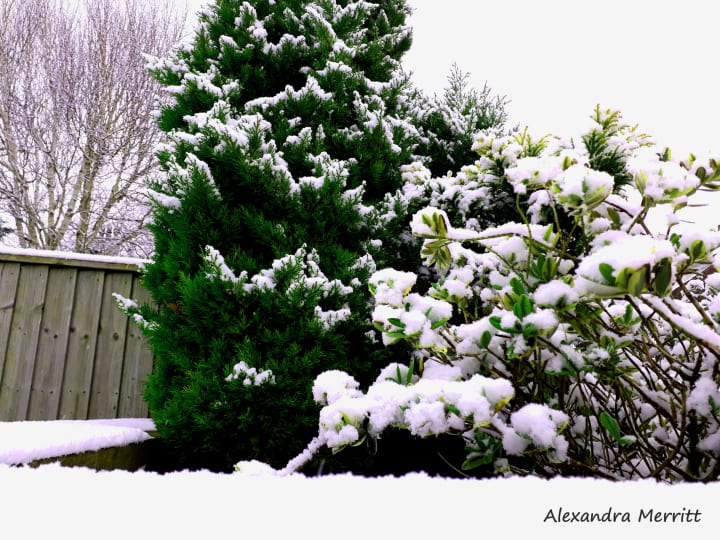 Now I know that despite the falling snow sticking, it was not guaranteed to be still be so beautiful in an hour. I threw on some warm clothes and grabbed my camera. I was determined to take as many pictures of this rare phenomenon as possible. Out I went and proceeded to find the angles unique to my small garden. Marveling at the softness of the newly fallen snow. Enjoying every moment in the cold, frozen air.