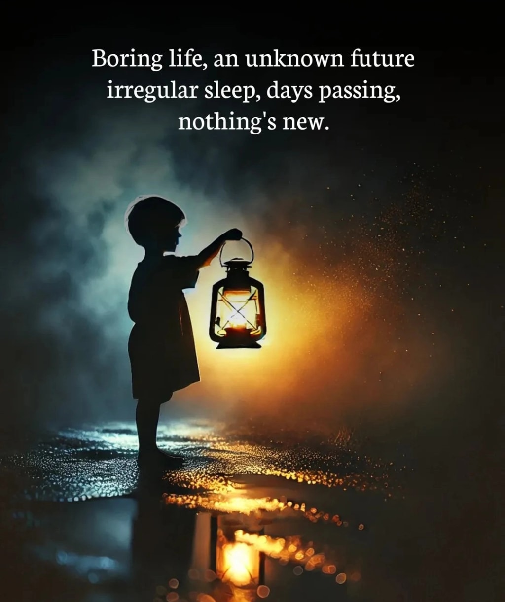 Sometimes life just feels… dull. You wake up, do the same things, scroll through the same feeds, and end the day feeling like nothing has really changed. The quote “Boring life, an unknown future, irregular sleep, days passing, nothing’s new” perfectly captures that feeling of emptiness many of us go through — when everything seems still, yet time keeps moving forward.