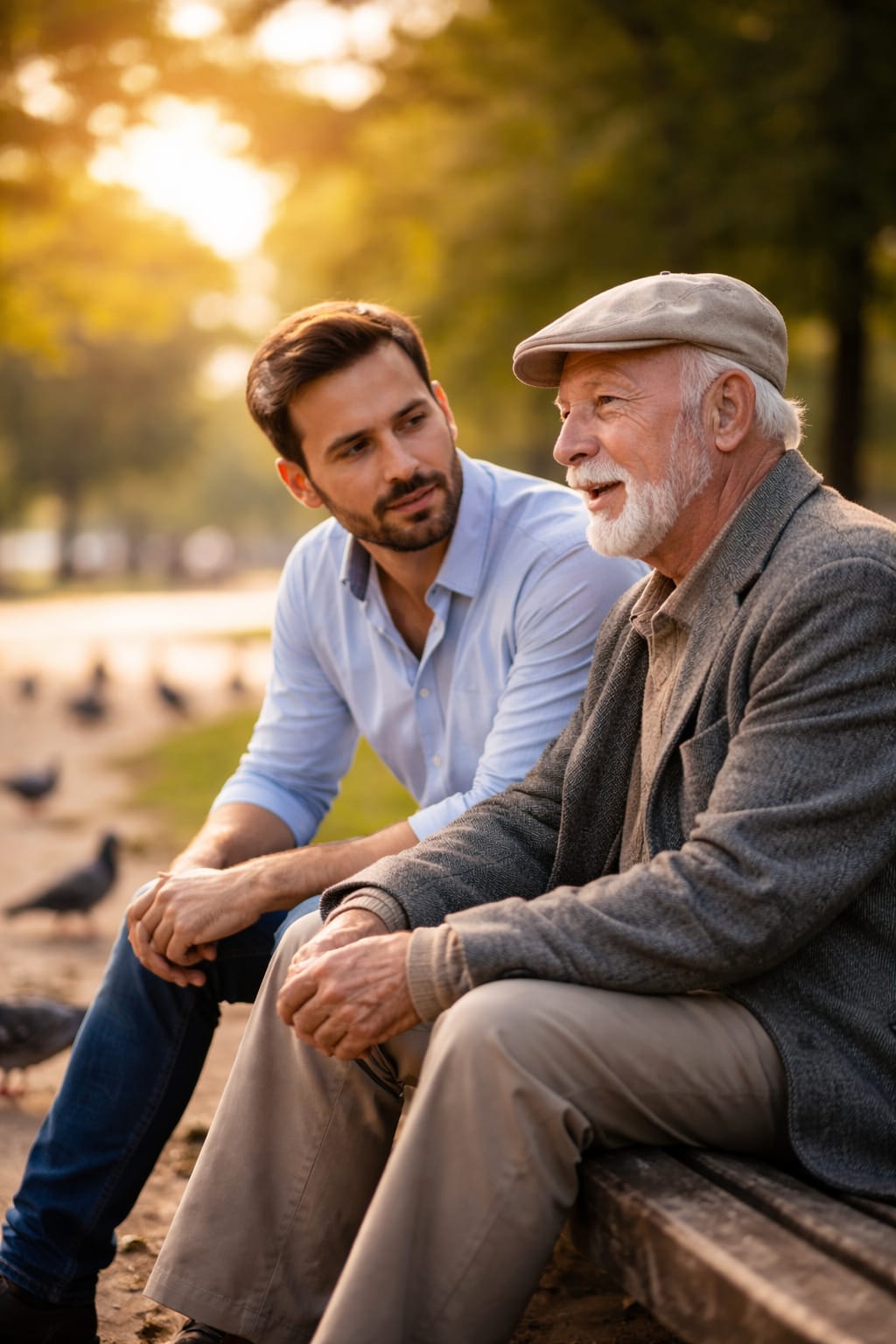 An older man sat alone on a worn wooden bench, tossing crumbs to the pigeons at his feet. His back was slightly hunched, and he wore a simple gray coat that seemed decades old. Yet, there was something about the way he sat — calm, unhurried, completely present — that stopped me in my tracks. I couldn’t explain why, but I felt drawn to him, like a magnet pulling me toward an invisible force.