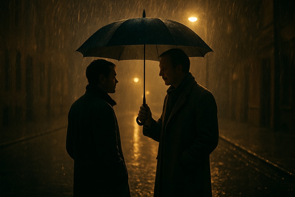 A tall man in an old brown coat walked toward me, holding a black umbrella. He didn’t look wealthy or powerful — just ordinary, like someone you’d pass a hundred times and never notice. Yet there was something calm about his face, the kind of calm that feels rare in a world that never stops running.