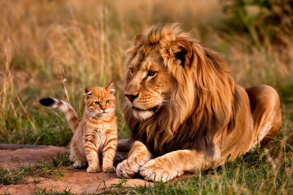 The lion looked down, puzzled more than predatory. “What are you?” he asked in a voice deep and calm.