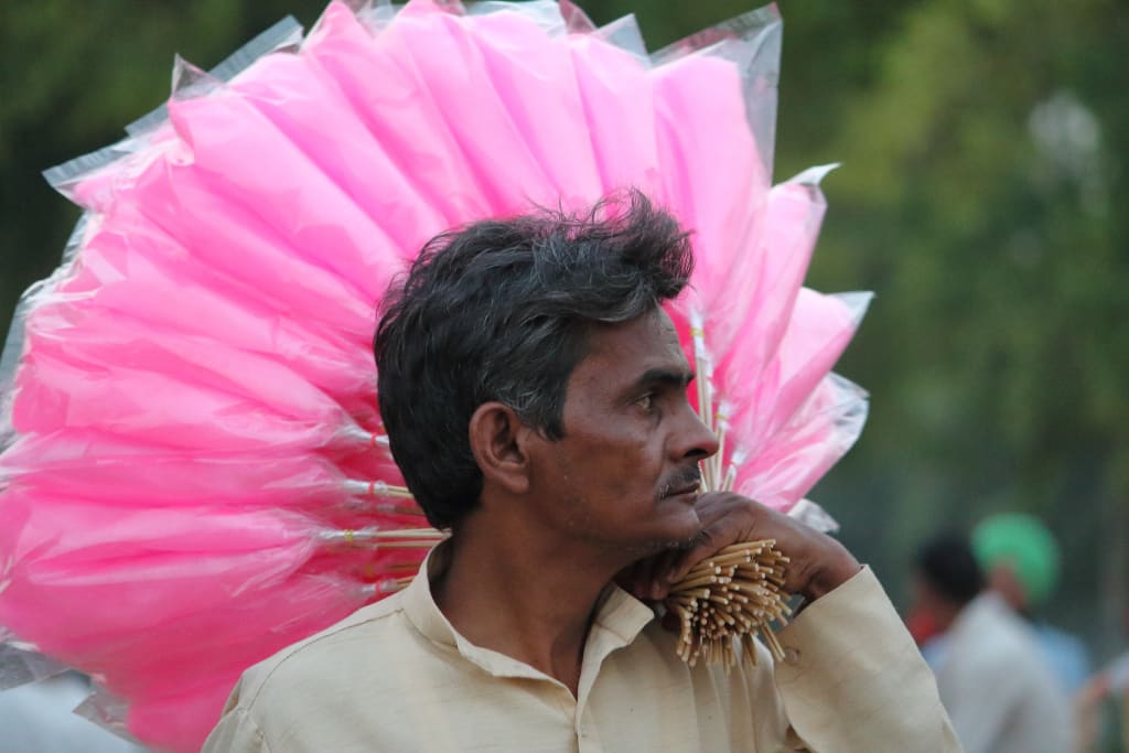 On one such trip in August of 2019, I was traveling back to Mumbai after offering prayers when I saw a street hawker carrying some cotton candies standing on the side of the road, trying to stop vehicles for a lift.