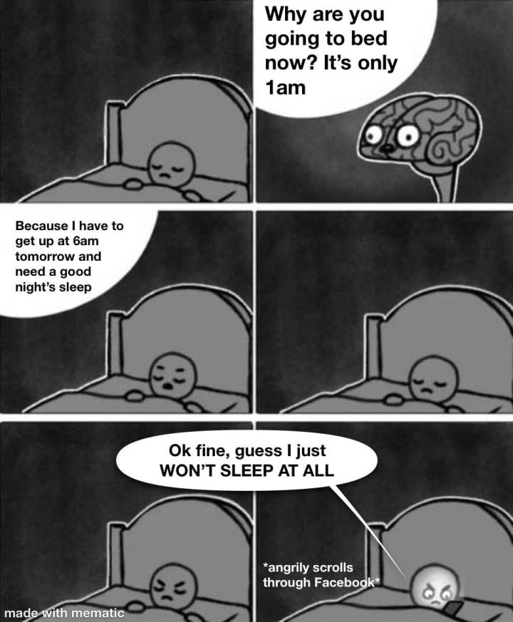 The third point was a little bonus I added at the end but is absolutely important for healthy sleep. Why? Because, as I mentioned earlier, light triggers the wakefulness part of the circadian cycle, especially blue light from electronic screens, and so by looking directly into light emitted by screens immediately before bed, you're activating the 'wake up' signals in your brain and training yourself to be more alert at these times. Hence, it can be harder to fall asleep afterwards. So those late night social media scrolls have to go.