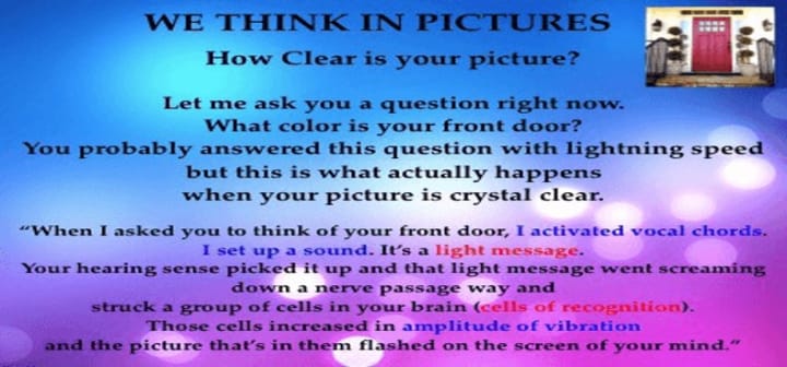 The image that you desire must be crystal clear and in brilliant color. The clearer the picture creates more order, less fear, less doubt and less confusion. The end result is amazing beyond your wildest dreams.