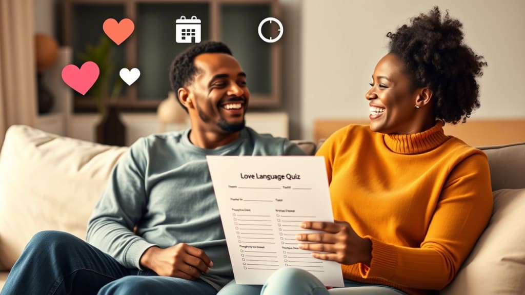 3. Review Results : Your top language(s) will highlight how you give and receive love. Share the quiz with your partner for mutual insights.