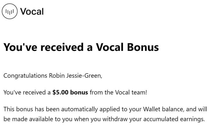 I just received a $10 bonus from Vocal and don’t know why?