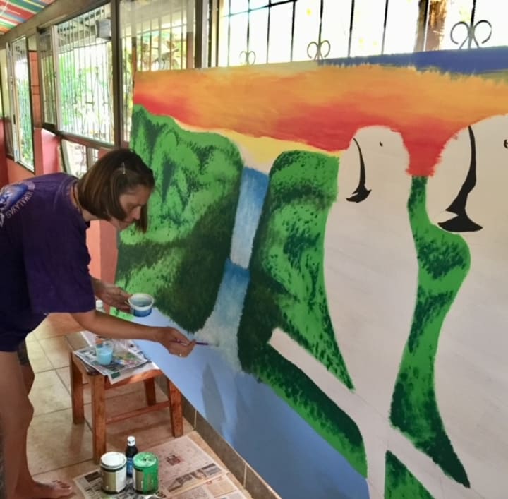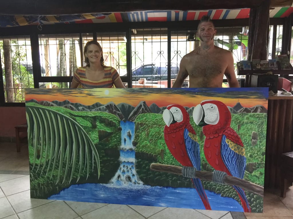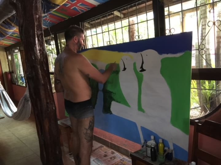 Although both of us are artists, we weren’t painters. Sure I had dabbled with acrylic paint a bit, and we had both been house painters back in Canada, but we hadn't done any serious art paintings. We were mostly both drawers, and Chris has been a tattoo artist for his whole adult life. But I had watched many of my friends in Canada paint, and I was a bit addicted to watching time-lapse YouTube videos of people painting.