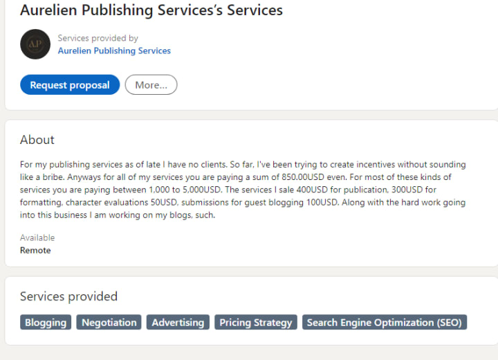 I sell publishing services, I'm a blogger, published author through Aurelien Publishing Services. I want to eventually own an independent book store.
