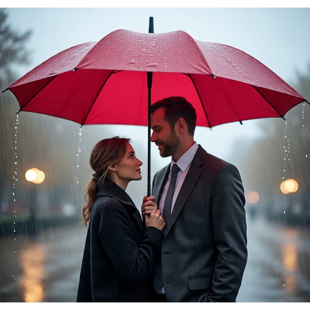 It was raining heavily when Ayaan, rushing to catch his bus, slipped on the wet pavement. Just as he was about to fall, a gentle hand grabbed his arm. He looked up and saw Elina, holding an umbrella and smiling softly.