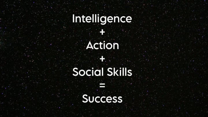 Success is attained not only through intelligence but also through action and interpersonal skills.