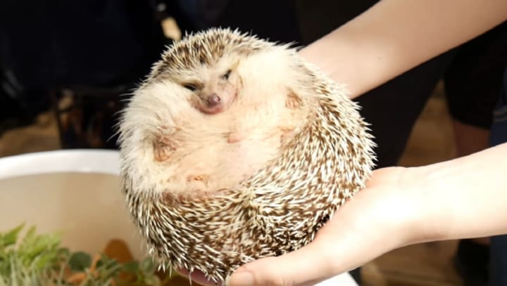 Each table has about three hedgehogs mostly curled up asleep as they are nocturnal creatures. As you drink, you can pick up and pet a hedgehog of your choice. The staff here are friendly and walk around showing guests how to properly handle a hedgehog.