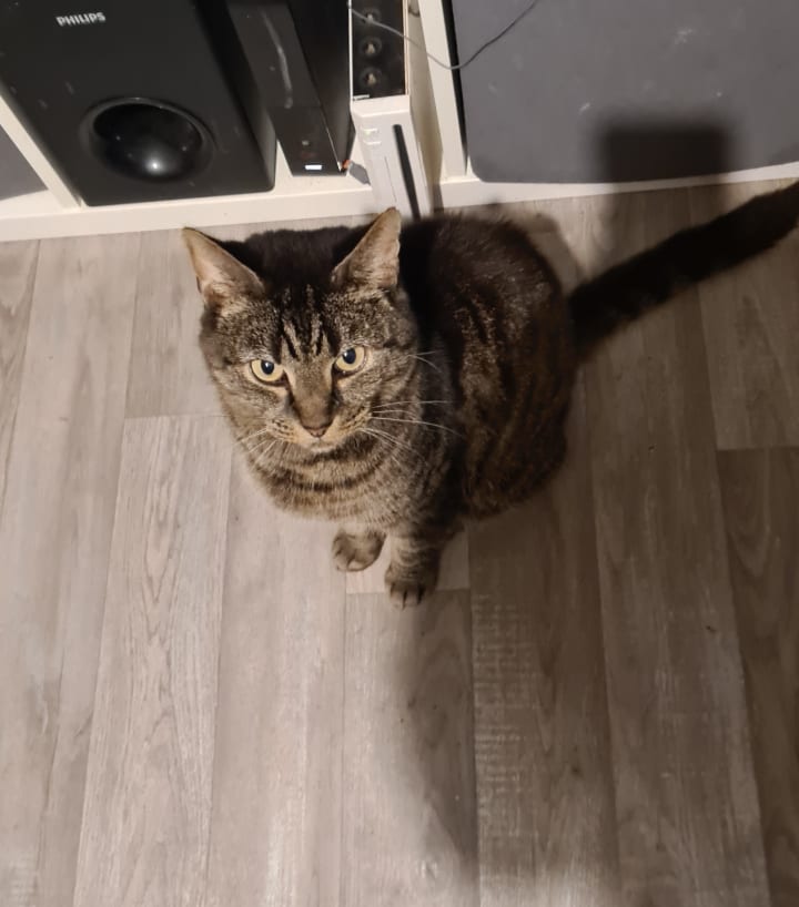 My next furry friend is Tiger, he is 7 years old and I wasn't really looking to get another cat but a family across the road brought some kittens over to ask us if we wanted one and he just ran into the house and straight up the stairs, so again, the cat had chosen us.