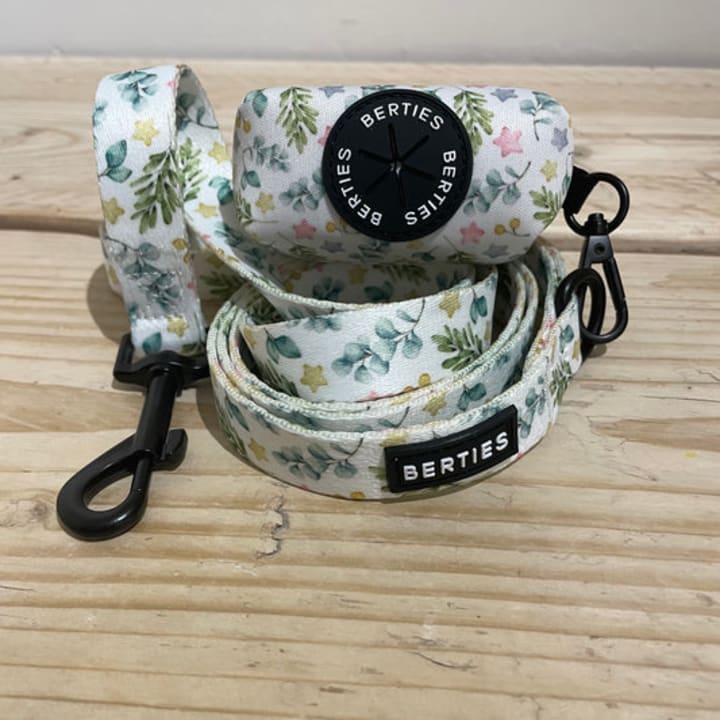 Myberties offers a wide range of dog accessories and apparel. We curate a collection of both functional and fashionable dog accessories, from stylish dog collars, harnesses, and leads to cozy dog walking bags and velvet bow ties.