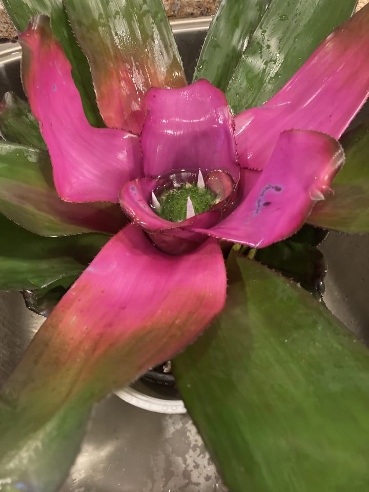 There are thousands of different Bromeliad and close to a hundred varieties of Neoregelia yet they all have one thing in common: a distinctly alien, otherwordly appearance. Is it from Earth? Is that an alien city in its cup? Bromeliad thrive in deserts, mountains, and rainforests. It’s non toxic and considered an easy keeper needing full indirect to moderate light. It blooms only once and when the bloom dies, eventually, which could be a year or more later, the plant does not bloom again and completely dies off after a time.