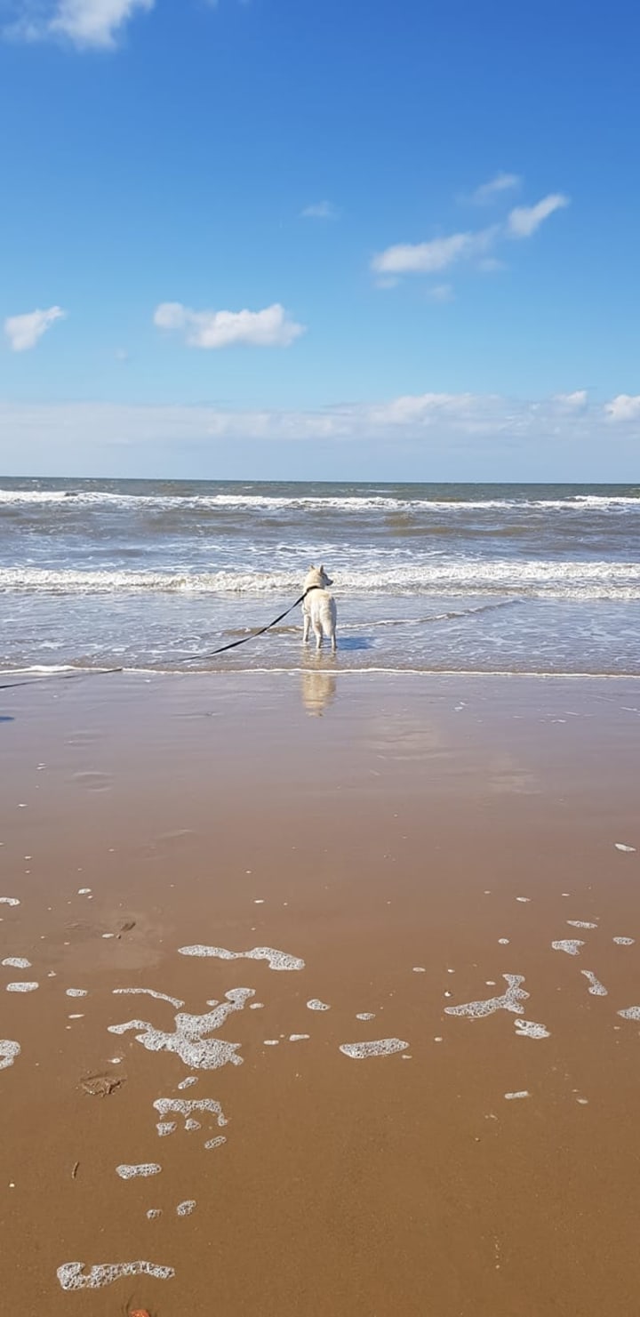 Above you can see a picture of our dog Mikka enjoying her long lead at the beach.