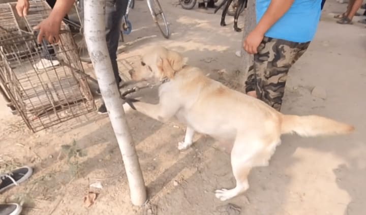 The Labrador got out of the car and immediately became extra happy after slowing down, and when the dog dealer handed the rope to the little brother who bought it, the Labrador kept circling the little brother. However, after receiving the rope, Xian did not take it away directly, but let the dog dealer again to weigh this Labrador. At the same time, in the process of weighing, the brother also told the crowd, this Labrador he spent 900 yuan to buy down, at that time, feel so good dog on the dog car some pity, which is to buy it down. Said, the little brother went to confirm the weight of some of this Labrador, which took the non-stop tail-wagging Labrador left the dog market ......