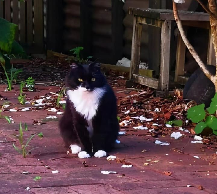 A long time ago, Pawn brought home leaves and branches, which he thought were his favorite things. Then one time I thought Pawn brought back all the garbage, and as a result, Pawn hurt his pride and never brought leaves and branches home again. I regretted this for a long time.