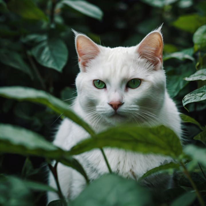 Explore the harmonious connection between animals and nature through the charming image of a white cat peeking playfully through lush green foliage. This article celebrates the innocence, curiosity, and serenity captured in this tranquil garden moment.