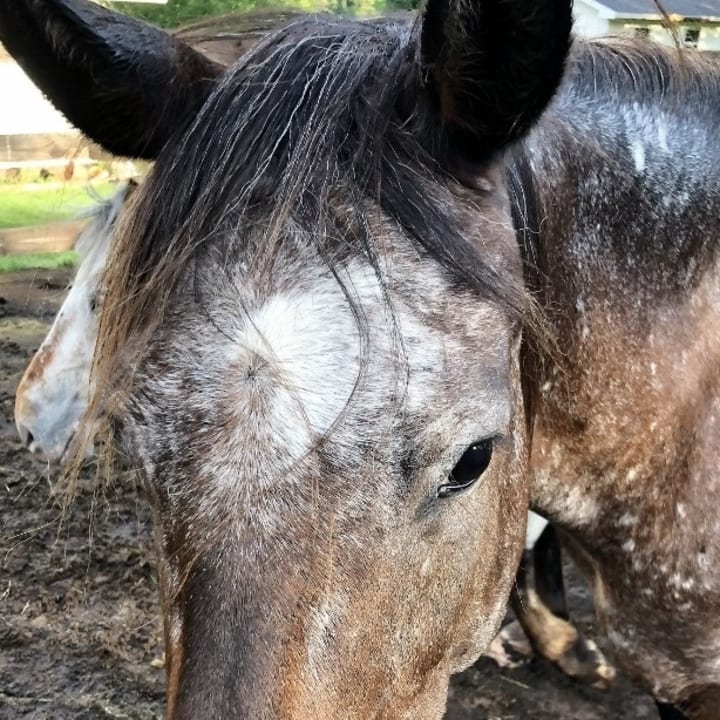 Blu mostly got pasture turn-out for the month, receiving only a handful of sessions with me. She has been enjoying her free-and-wild time hanging with her best horse friend, and eating grass, while I decided I needed to spend time with two other horses, Derby and Maiya, to prepare them for sale. I’ll be getting back to spending more time again with Blu shortly.
