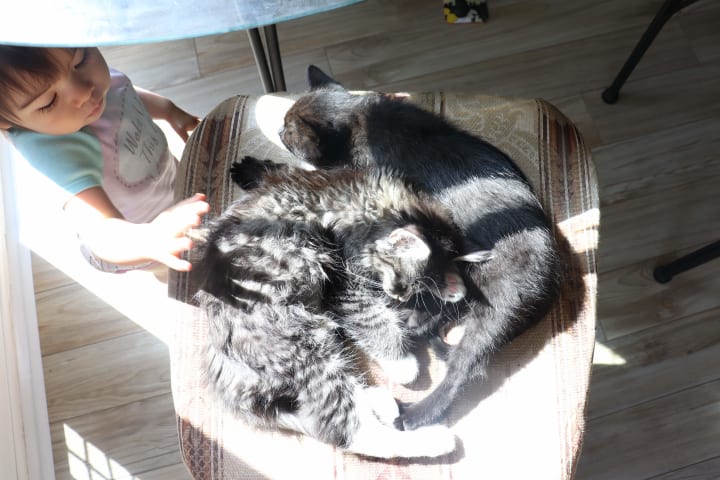 Now they had five mole-rat looking kittens in the house that they hid from their mother. If she saw them, she would’ve gone mad and cast the creatures out and send the children to their rooms. The kittens grew up to be beautiful and when they were of age, the boy and his sisters released them to the outdoors. The kittens were just like their mother Whitesocks, and they would visit the backyard daily for water and food. He became fond of one of the kittens and named her Mimi.
