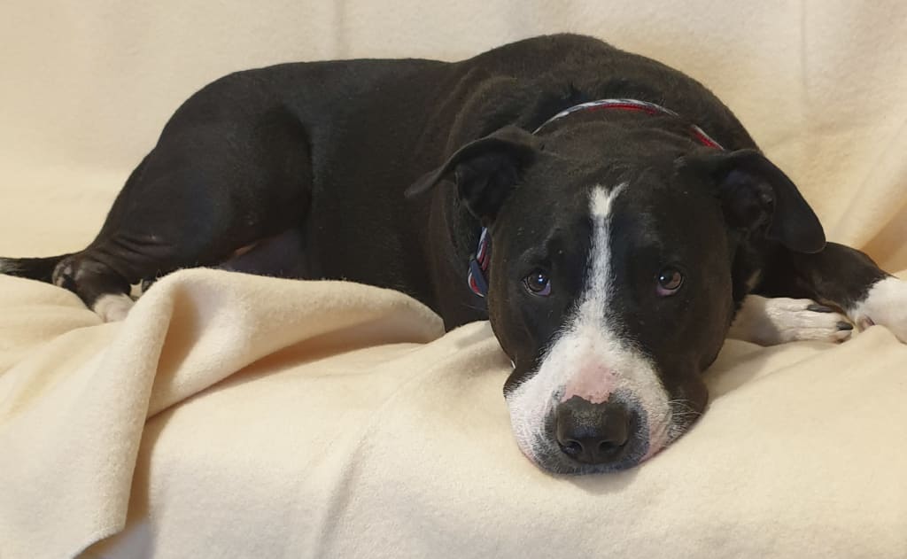 It’s a very serious business trying to adopt a dog. Forms to fill giving all sorts of details. Multiple pages of information including the dog’s details. (He was four years six months old, desexed, dewormed, had vet check and so on). Formal interview by a staff member. Then, finally, an introduction to the dog himself – Sam! We got on like a house on fire. But I could not help notice the wide snout with a bump in it and a barrel chest and I thought that if he was a kelpie then he certainly had a touch of Staffy. The formal documents, however, described his as being kelpie.