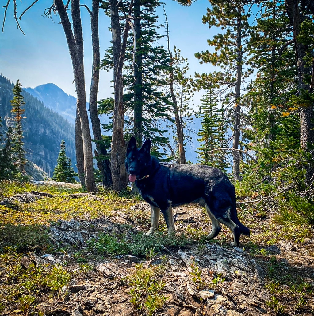 The sun had not yet risen when Sidney, my German Shepherd, and I loaded up to go for a hike. I knew it would be a long day. My goal was to reach the trail head by no later than 6:30 am. The hike itself would be a rough one. The trail to Pine Creek Lake is labeled at the trail had as 4.5 miles with nearly 3600 feet of elevation gain. The average length of time it took hikers was around eleven hours according to hiking reports. Those same reports claimed the trail was both longer and steeper than the trailhead claimed. Sidney and I like to hike and while this sounded like a long rough day, I was excited to take on the challenge.