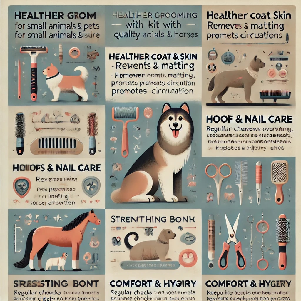 Regular grooming helps detect and prevent skin problems such as rain rot, fungal infections, and parasites like lice or mites.