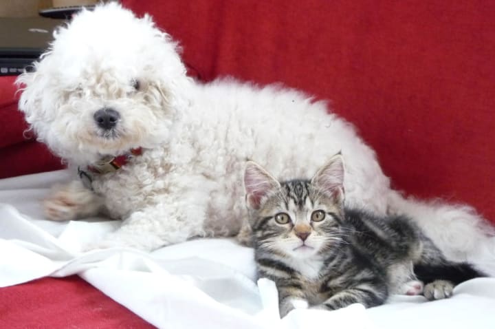 Hypoallergenic and cute as a button, little Bichons are probably the most adaptable dogs you'll find. This also means that you can expect Bichons to be perfectly fine with having a cat in the house.