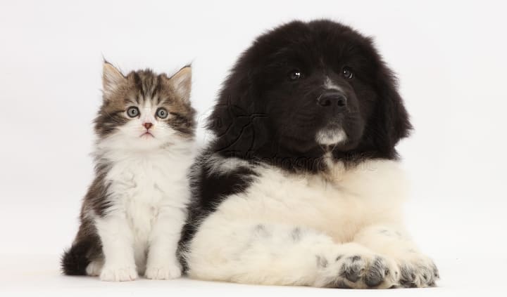 Newfoundlands are proof that you don't need to have a small dog, or even a medium-sized dog, in order to also have a cat at home. Bred to help protect livestock from predators, Newfoundlands are gentle giants that will almost immediately click with smaller pets.
