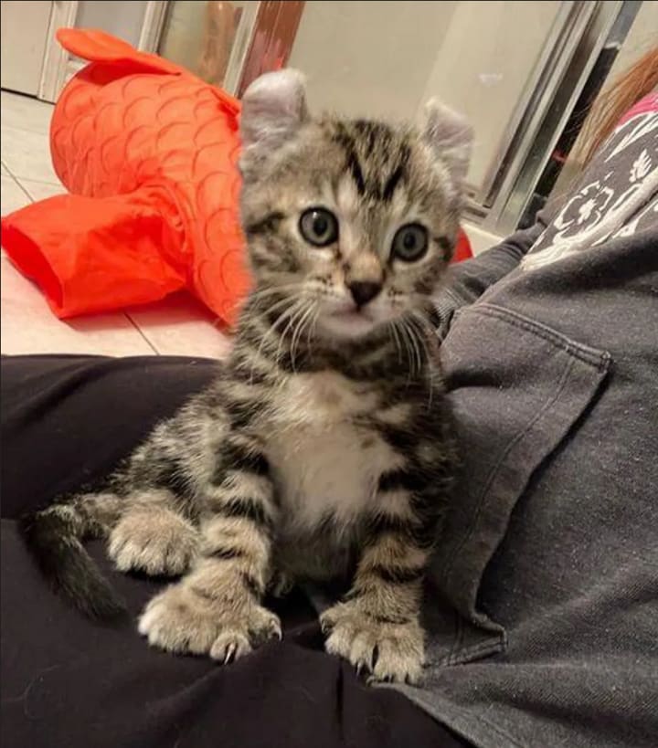 When Tara went to see the family, she saw one of the kittens was a polydactyl with curly ears, which she had rescued and adopted before. She returned home to drop off the stones, but she couldn't take her mind off them.