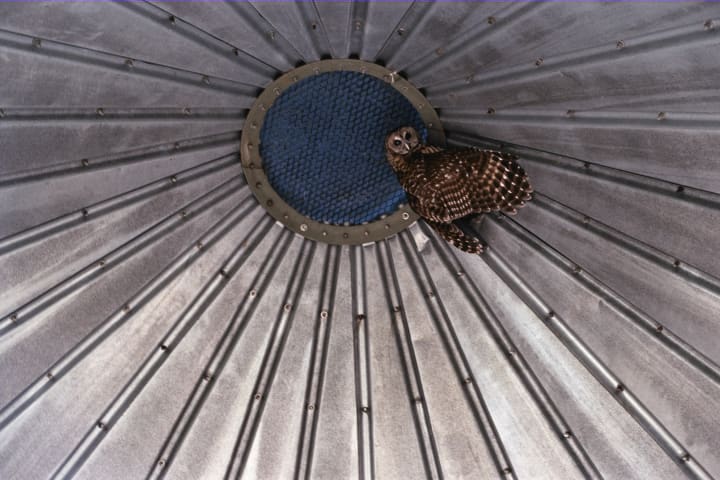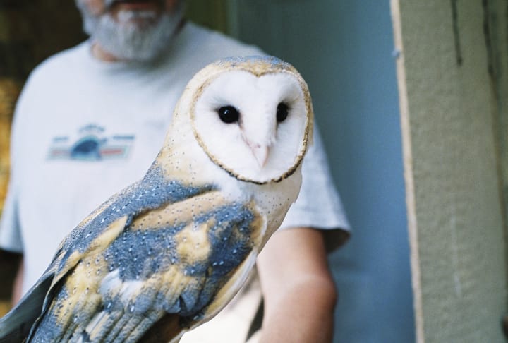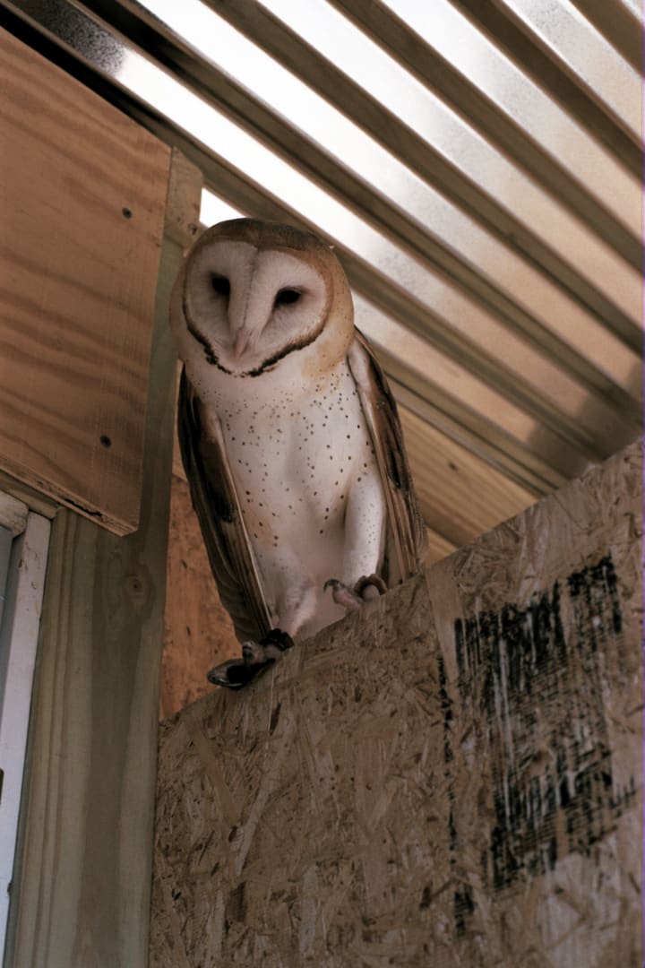 We pushed the rusty wire cage door. Ollie peered down from her perch with all of her quiet wisdom. Gentle intimidation to remind me to be careful. Ollie was a professional. She had lived in human care since the strike of lightning. She was a teacher of the finesse it takes to handle a wild animal.