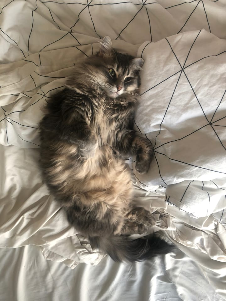 To this day, she does her feeding dance for breakfast and dinner. It consists of 3 twirls, a tail high in the air, a jingle of high-pitched meows, and some full-body rubs to my calves as I fill her bowl. She would cry out from under the door when we left for work or school. It was heartbreaking. I remember wondering if we both had developed separation anxiety. I always fed her right before I left. Why? So she would be distracted, and so I wouldn't be haunted by that perfectly shaped circle head and flaring whiskers in the window. Then, boom, the pandemic hit. The bloody world shut down in what felt like an instant. All I can tell you is that this clingy, attention-seeking, lover girl has never been happier. The day I was promoted to stay-at-home cat mom was her favourite day. It was a change that ended up working out for both of us at first. Gtmiuyrtgfrdew. Oh, sorry about that. She's still working on typing words when stepping on the keyboard. Will get there. Back to the original program, oh yes, working and attending my final year of college from home was going quite well.
