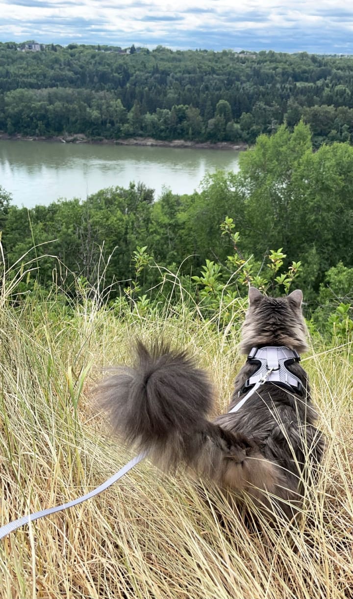 Sundays are the only full day we have altogether now, and it's a day we cherish most. We take her on walks, she gets to see the birds, she rides on our shoulders when tired or in her travel pack. We want her to be able to be a cat. Just like parents with their kids, we try to give her the best life possible, because as weird as it sounds, she's helped keep our sanity week after week when I thought I had nothing left to give in terms of my mental state. We adopted her only two years ago when everything was going perfectly for us. In a blink of an eye, everything was being taken from us. Except, we still had each other. Our little family of three. While she may not be my "child," she sure is my companion. While we laugh at my new title of stay-at-home cat mom, it's the only thing that keeps me going. She is a mood lifter for my soulmate, who is working harder than anyone I've ever known to keep our dream of living in this beautiful place a reality. The place he was born and loves.