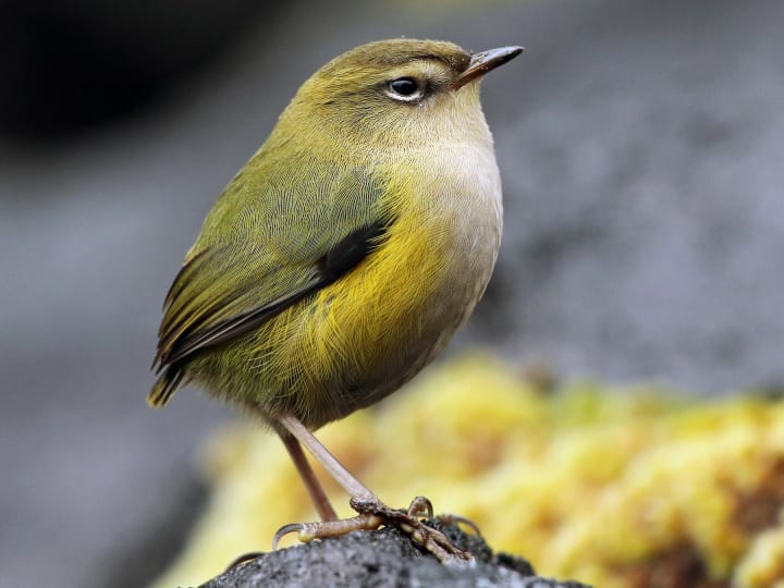 New Zealand rock wrens are native to the South Island. They have a Maori name, piwauwau, meaning "little complaining bird." They're not good flyers so they hop and run bobbing their heads and flicking their wings. Their long stout legs make them good rock climbers. Their diets consist of invertebrates from the ground as well as seeds, berries, and nectar from flax flowers.