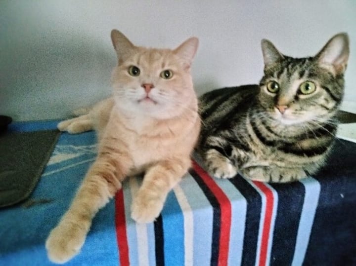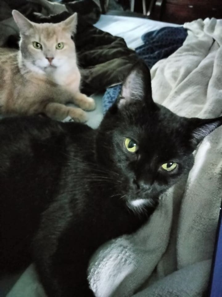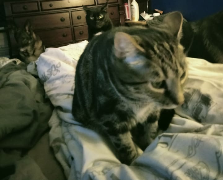 I know! 🤷♂️ Ridiculous, right? Most were strays that I had rescued. Some had been born in the closet in my bedroom (and I couldn't find homes for them when they were weaned). Just the winter before, I had taken in a pair of freezing black cats that we named Midnight and Shadow, not knowing that Shadow was pregnant at the time. Four months later, she popped out five kittens.
